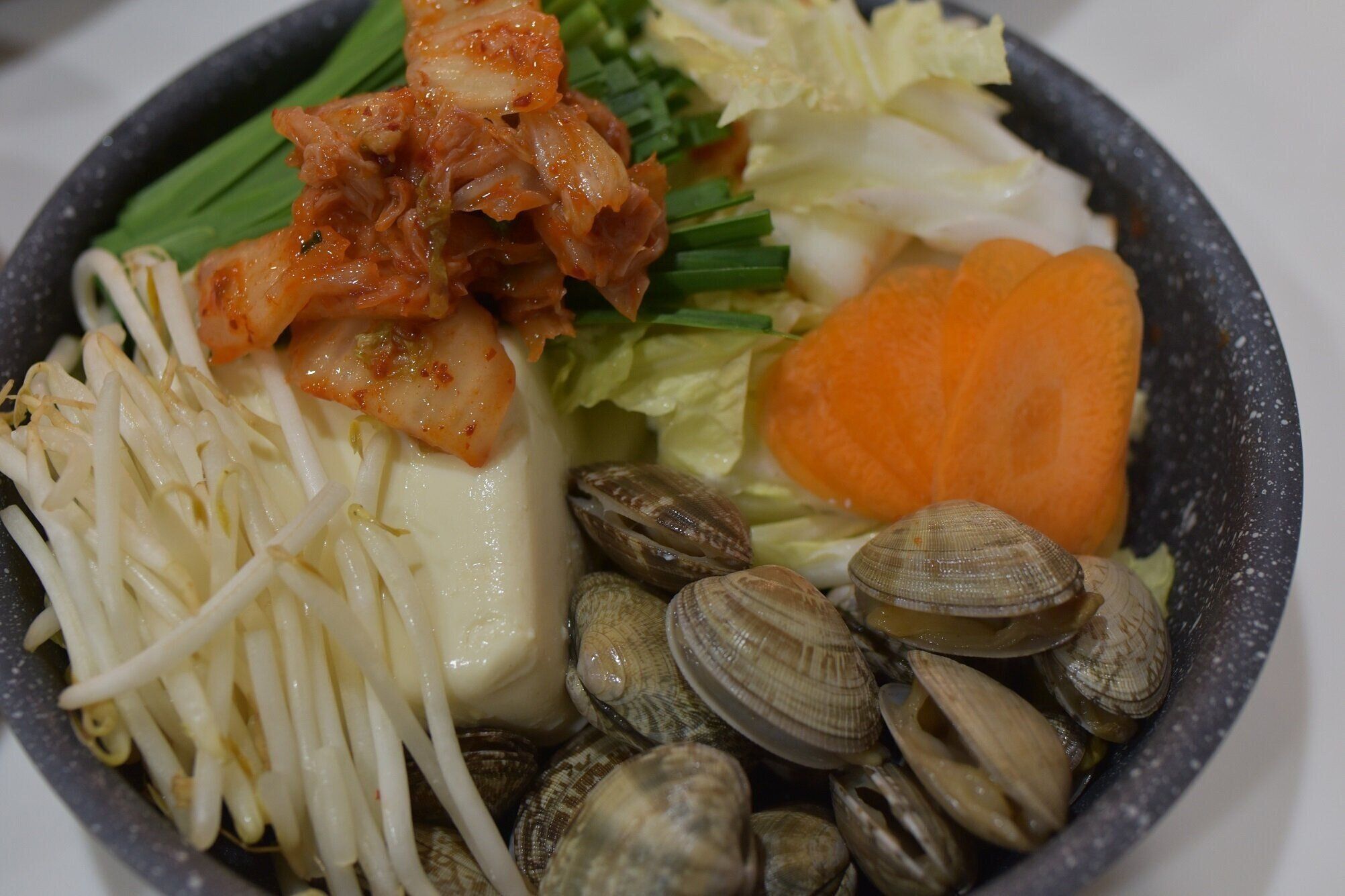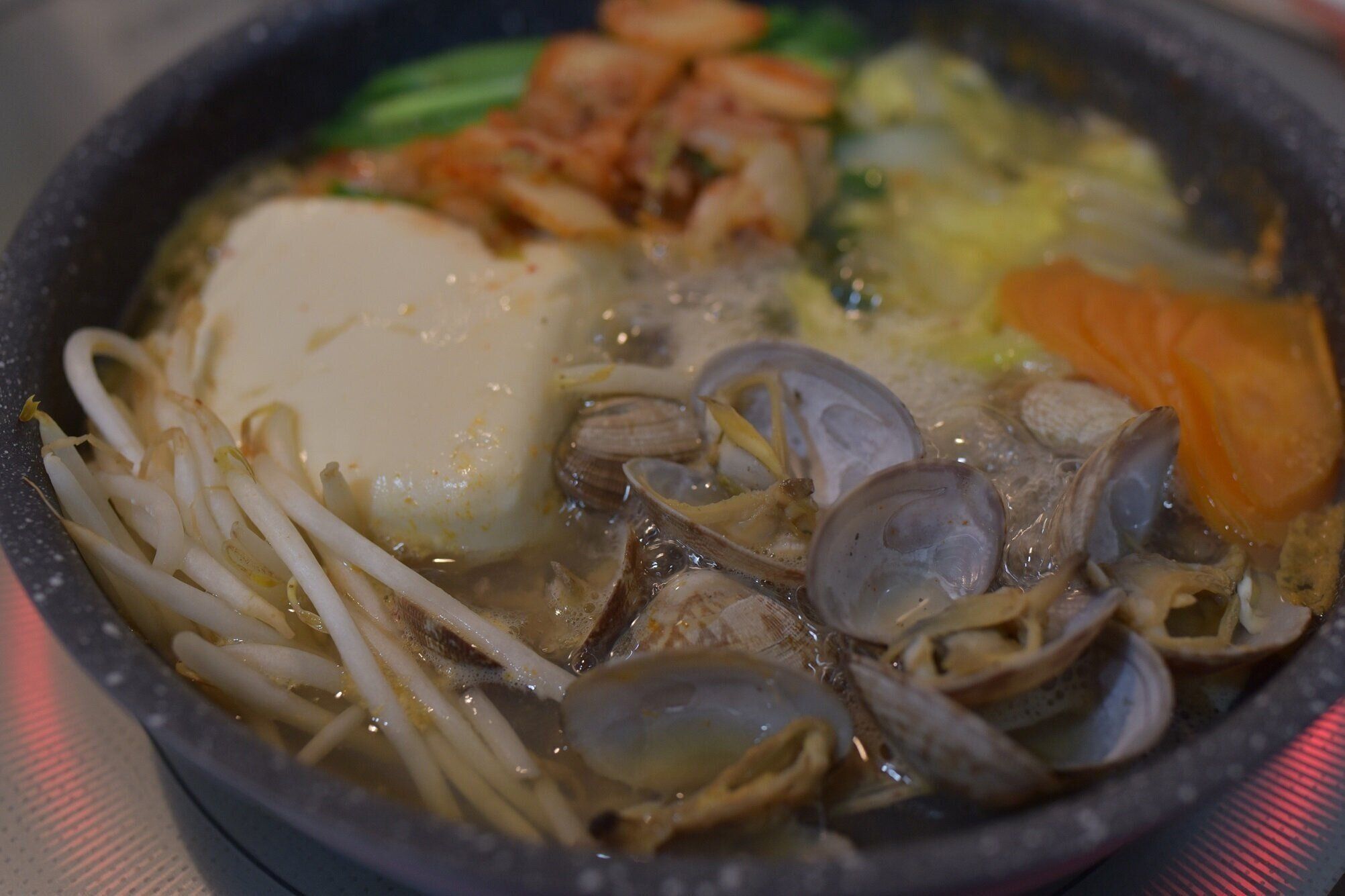 辛いのが食べたいときは、豆腐とあさりでスンドゥブ風に。
