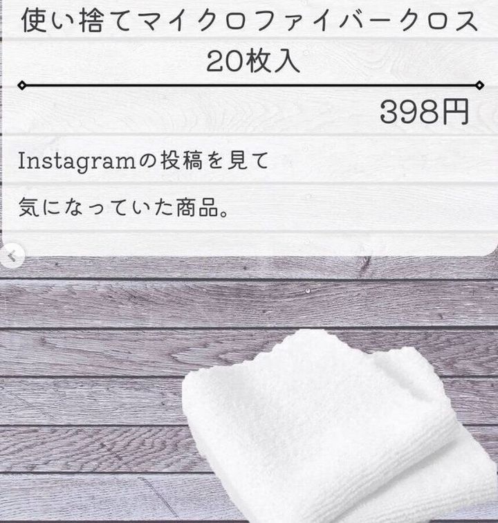 キッチンや洗面台など、水まわりのお掃除などにサッと使えて、加えてしっかり汚れも落とせる使い捨てマイクロファイバークロス。価格は20枚入りで398円です。「吹き跡が残りにくく毛羽立ちにくいので、使い倒している」という声も。コスパも◎です。