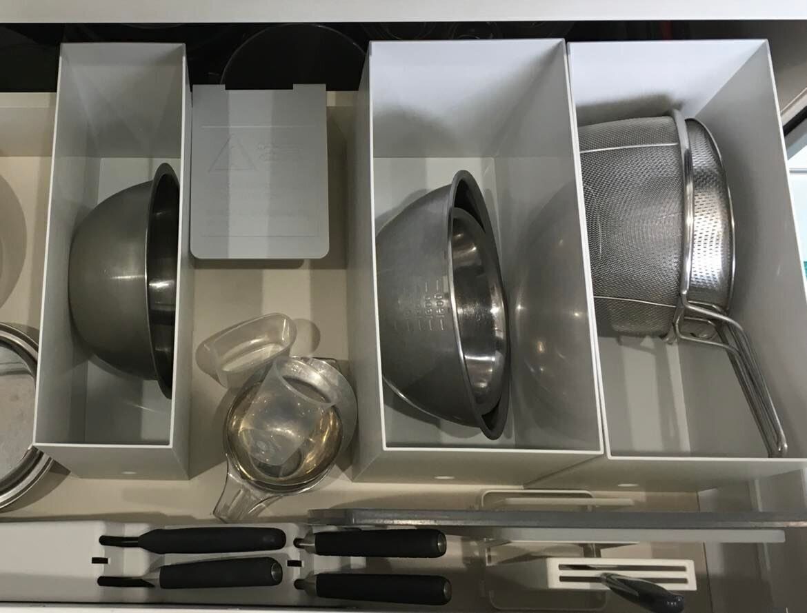 「ファイルボックス」は書類整理だけでなく、キッチンの引き出し内部を仕切るのにもピッタリ。