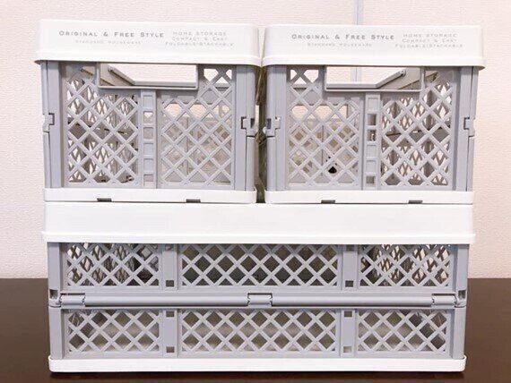 折り畳み時も、組み立て後もスタッキングができるのがうれしいポイント。同サイズは勿論、Mサイズの上にSサイズを2つ並べてもぴったりスタッキングできるので、見た目もすっきり!