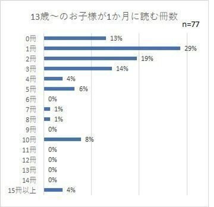 本を日常的に読んでいない子の割合は12歳以下では少ないものの、13歳以上では13%と増加傾向に。勉強や部活動でいそがしくなるせいか、読む冊数がぐっと減るようですね。