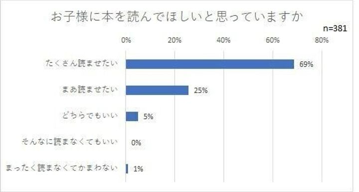 「お子様に本を読んでほしいと思っていますか?」という質問には、「読ませたい」と答えた人が大多数を占めました。