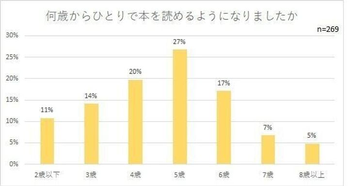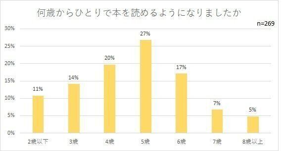 子どもがひとりで本を読めるようになった年齢は、4~6歳が半数以上を占めました。