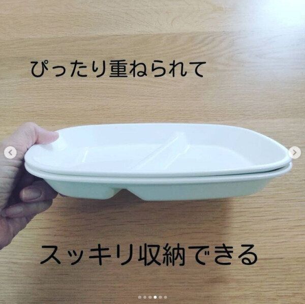 子ども用の食器としてプラ食器を使っているかたも多いことでしょう。割れにくいのがメリットですが、こまかい傷がつきやすく、油汚れが落ちにくいのがデメリットだとも言えますよね。そこでおすすめのものが、「ランチプレート」(610円)です。ニトリのランチプレートは、傷がつきにくく、軽くて扱いやすい、汚れが落ちやすいとたくさんのメリットがあります。さらに、ぴったりと重ねられてすっきり収納ができるのもうれしいところですね。まさにいいとこづくしのプラ食器です。