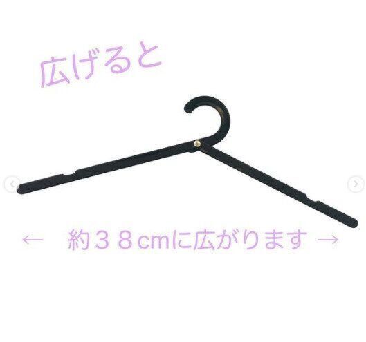 たたむとコンパクトでありながら、広げると38cmの幅があり、大人用の服も問題なくかけられます。また、肩ひもをかけられるくぼみつきなので、キャミソールなどのハンガーから落ちやすい服もしっかりかけられますよ。