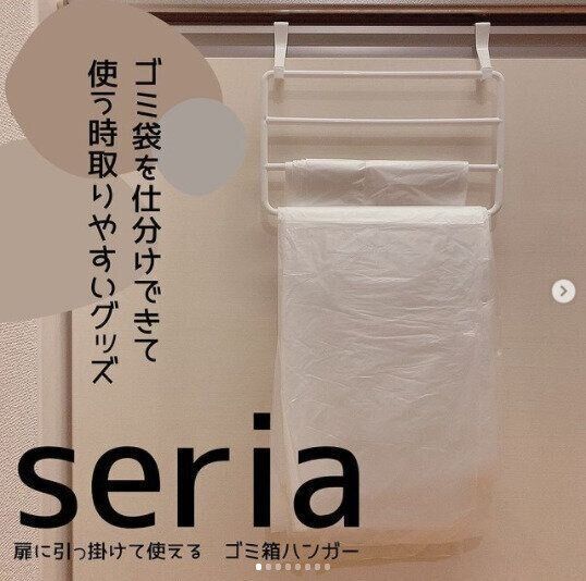 ゴミ袋の収納ってどうしていますか。引き出しや箱にしまっておくと取り出す時にけっこう不便ですよね。こちらの「ゴミ袋ハンガー」110円を使えば、ゴミ袋を1枚ずつサッと簡単に取り出すことができますよ。