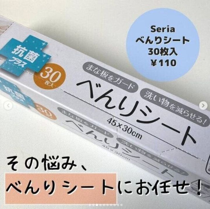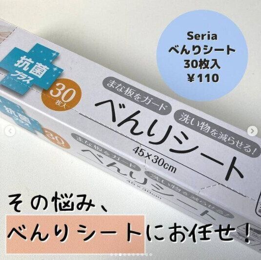 まな板って、すぐに黄ばんでしまったり、生ものの臭いがうつってなかなか取れなかったり…。そんな悩みを解消してくれるのが、セリアの「べんりシート」110円。