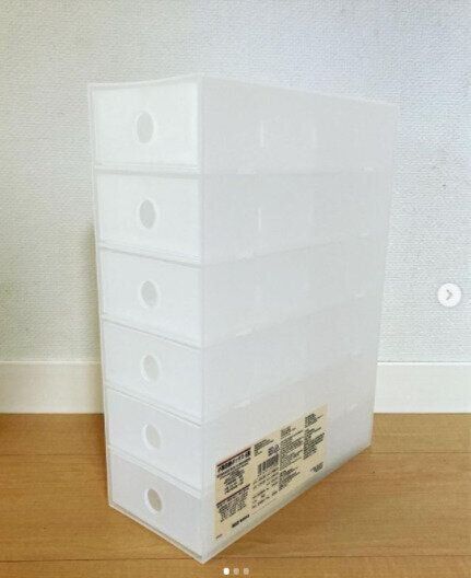 こちらは無印良品のポリプロピレン小物収納ボックス。6段もあり、半透明なので中に入っているものもわかりやすいのがうれしいですね。こまかい物を収納するのにピッタリです。