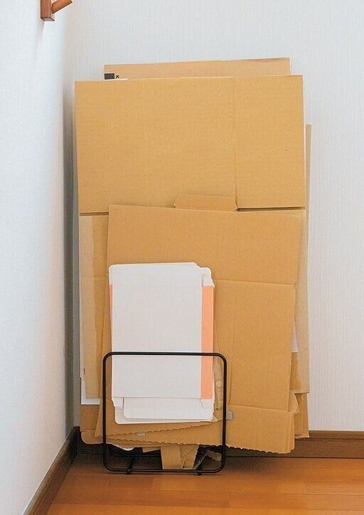 すぐにたまる段ボールは玄関そばの隅にひとまとめに