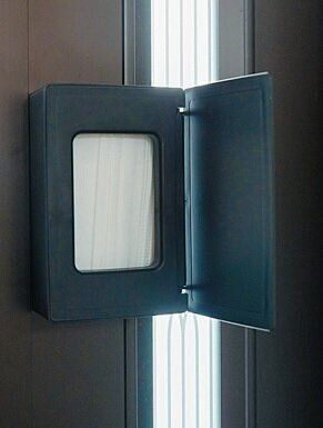 磁石をケースに貼りつけて玄関ドアのわきに。迷子になりがちなマスクも、ここなら片づくし、絶対忘れません。
