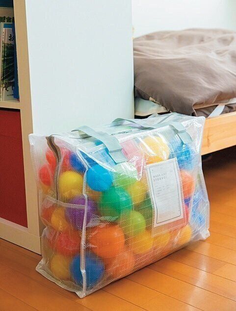 しっかり自立するし、たくさん入ります。中身も見えるので子どものおもちゃ入れに最適。