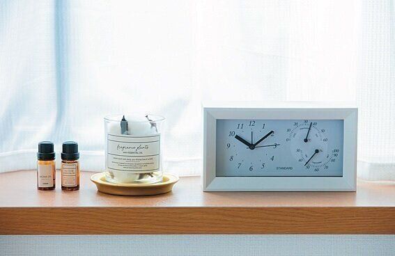 時計は置いてるだけでおしゃれなデザイン。インテリアになるアロマ系アイテムも豊富。