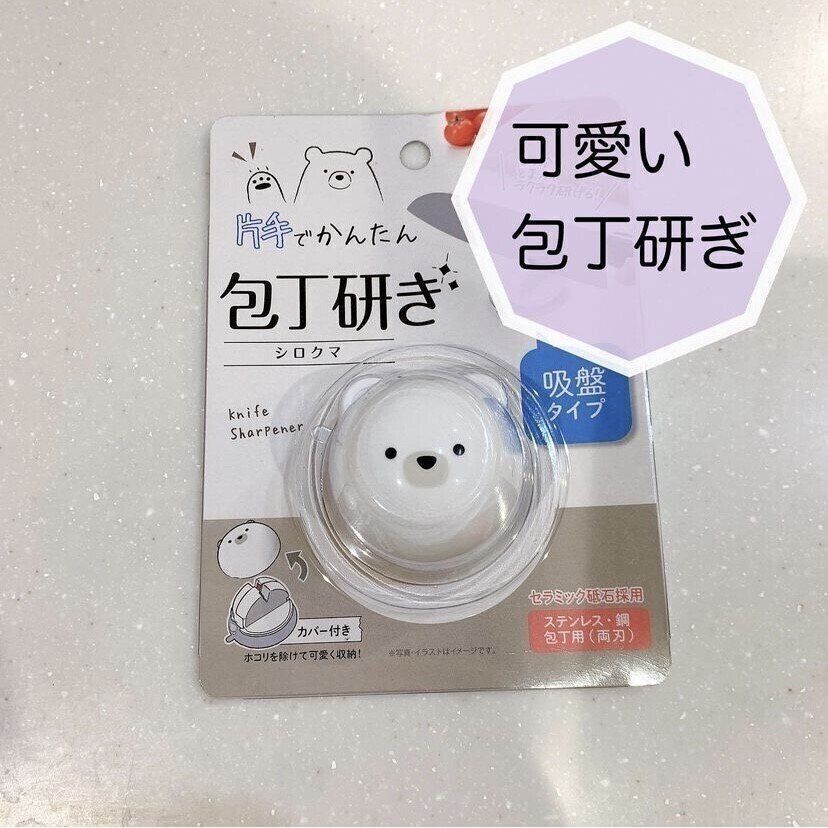 シロクマのカバーがかわいすぎるこちらは、「包丁研ぎ」なんです。カバーを外すとセラミック砥石の包丁研ぎが現れる仕組み。コンパクトなので狭い場所にもスッキリしまうことができます。研ぎ心地も◎だそう。吸盤がついているため、片手でも簡単に研ぐことができて便利。