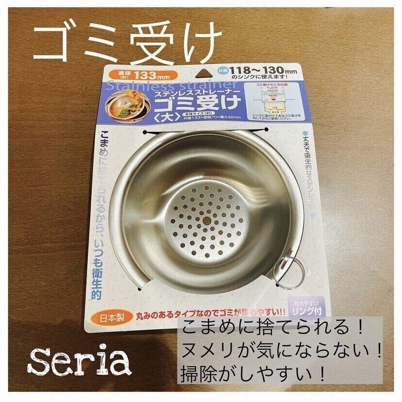 SNSで評判の、「ステンレストレーナー ゴミ受け」。大きいサイズは、生ゴミが溜まるキッチンの排水口に最適なんです。網目タイプやプラスチックのゴミ受けは掃除がしづらくヌメリやすいですが、こちらはステンレスなので掃除が楽チン。穴が小さいため、ゴミが多い場合はネットを使用して使うといいそうです。