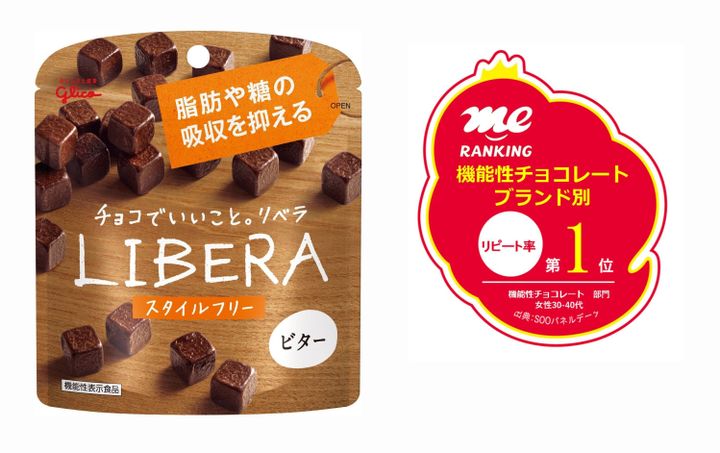 「LIBERA」はチョコレートで初めての“機能性表示食品”として16年3月にデビュー。脂肪や糖の吸収を抑える食物繊維の難消化性デキストリンが加えられています。機能性表示のチョコは「おいしくないのでは?」と思われがちですが、LIBERAは口当たりもよく、チョコ自体がちゃんとおいしいので30~40代女性のリピート率がなんと1位! 食べたい……を我慢する必要がなく、しっかりチョコのおいしさを楽しめる女性にうれしいチョコレートです。パウチタイプなので持ち歩きにも便利です。