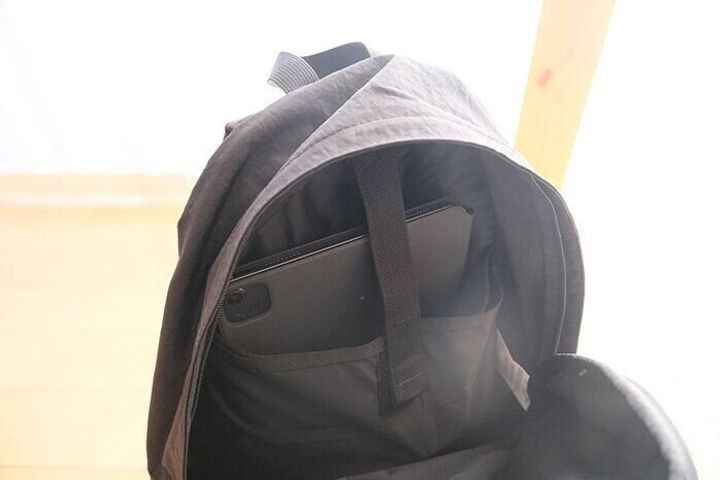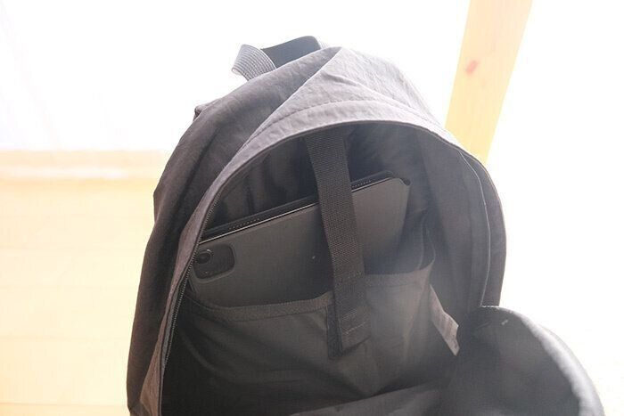 iPadやPCを入れられるポケットもついており、便利!ここはお財布を入れるポケットとは違う場所になっています。お財布を入れるポケットとPCなどを入れるポケットは二重になっており、うまい構造になっているのですね…!