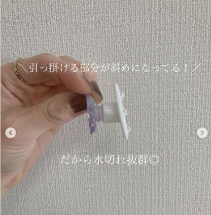 すこ~し斜めになっているんです!そのため、ひっかけたスポンジの水がよく切れますよ。少しの工夫で、より使いやすく設計されているのが素晴らしいですね。