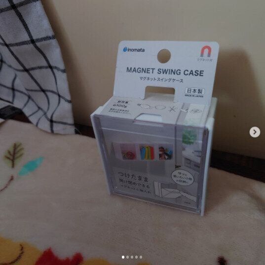 「使い勝手が抜群!」とSNSで話題の「マグネットスイングケース」。裏にマグネットがついていて、冷蔵庫などにペタッとくっつけられます。いくつか買って、輪ゴムやお弁当で使うカップなどこまごましたものを分けて収納している人が多いそう。片手で簡単に開け閉めができちゃうからとっても便利!