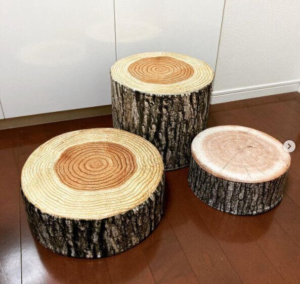 とにかくかわいいとSNSで大評判の「フロアスツール キリカブ」(ハイタイプ2,536円・ロータイプ1,518円・キッズ999円)を紹介します。ナチュラルで本物の切り株に見えるアイテムで、使わないときは部屋の隅に置いているだけでもインテリアになります。硬さもほどよく、しっかりしているためスツールやオットマン、子どもが遊ぶ際の台にも使えるでしょう。カバーが汚れたら取り外して洗えるところも、高ポイント。いくつかまとめて買いたくなるアイテムです。