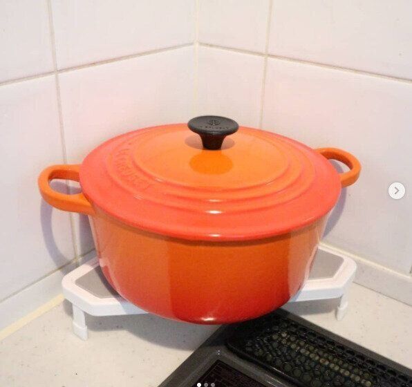 コンロ奥のデッドスペースを活用したいかたにおすすめのアイテム「コンロコーナーラック」(1,314円)です。専用アイテムのため、少々重いお鍋や熱いお鍋やフライパンでも大丈夫。これさえあれば、デッドスペースを有効活用できるでしょう。また、シリコーンマットは取り外しできるため、汚れてもお手入れ簡単です。コンロがフル回転で使えて、調理時間の時短にもつながるとても役立つアイテムです。