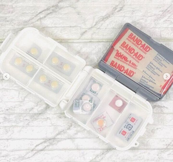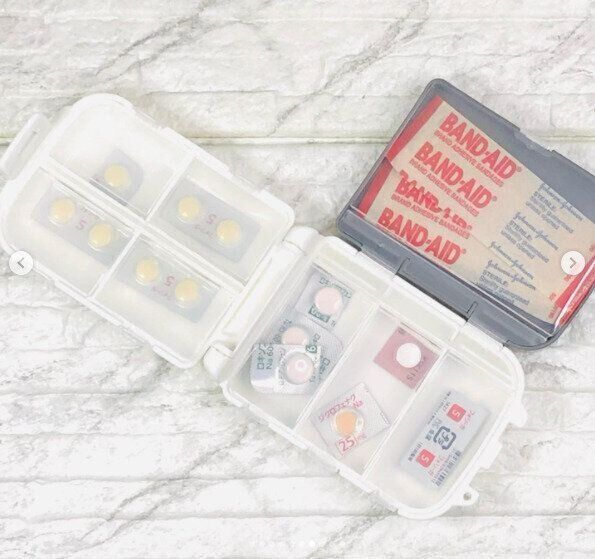 お薬を数種類持ち歩いているかたにおすすめの「ケータイ3段ケースMOホワイト&グレー」。このケースは全部で8つのポケットがついているため、小分けに便利です。小さなポケット7ヵ所には錠剤などを入れ、大きなポケットには絆創膏や粉薬を入れるのがおすすめの使い方になります。ケースカラーはホワイト&グレーで、スタイリッシュな見た目なのも◎。また、ハードケースのため、なかのお薬をしっかり守ってくれて安心ですね。これで110円だとは思えないハイクオリティなアイテムです。