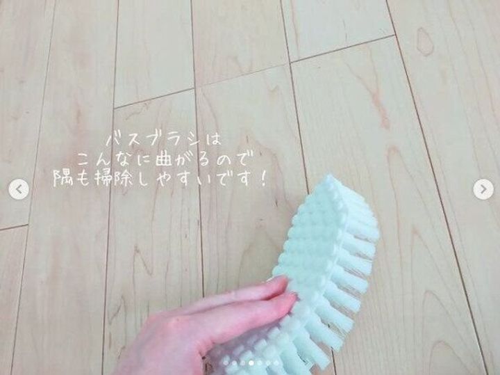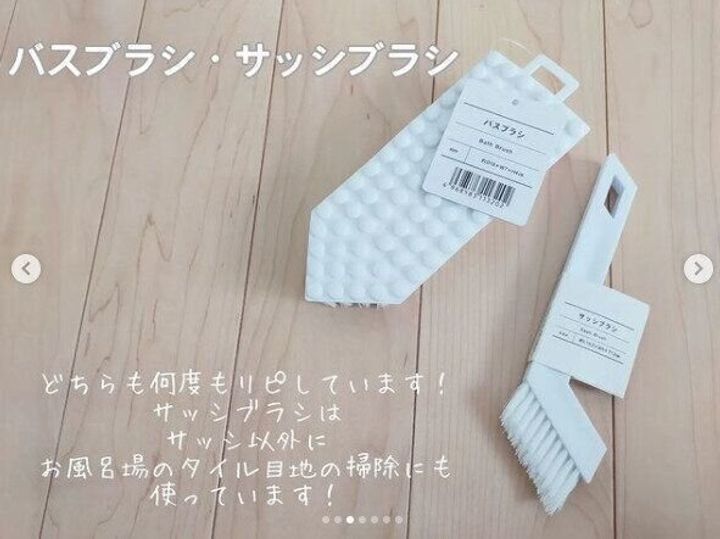 何度もリピ買いしてしまうほど、使いやすいこちらの「バスブラシ」と「サッシブラシ」。特筆すべきは、バスブラシの柔軟性。かなり曲がるため、風呂場の隅々まで掃除できるところが使い勝手がよいですね。またサッシブラシは、サッシ以外にもタイルの目地などの掃除にもおすすめ。どちらもシンプルなホワイトで、清潔感がある見た目なのもホワイト好きにはたまらないお掃除グッズです。