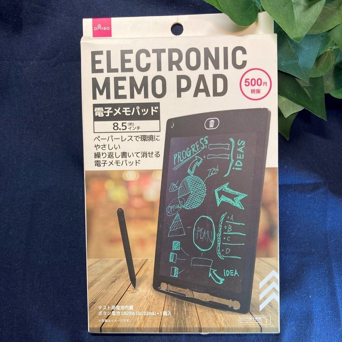 できるだけスマホでメモを取るようにしていますが、急ぎの時はやっぱり「紙とえんぴつ」で書いていたので、これを減らそうとダイソーで「電子メモパッド」を買いました。おかげで紙とペンを探すこともなくなって、手書きメモのゴミも減ったように思います。