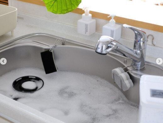 薬剤を入れて時間を置けば、シンクやお風呂の床がピカピカに。さらに、溜めた水にキッチン用品やお風呂用品を入れれば、すべてまとめてきれいにできちゃいますよ。