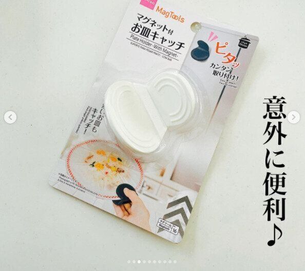 電子レンジにかけたお皿が熱くて持てないときありますよね。ダイソーの「マグネット付 お皿キャッチ」110円を使えば、熱いお皿をしっかり持つことができますよ。マグネットつきだらから冷蔵庫や電子レンジにピタッとくっつくのもうれしいポイント。