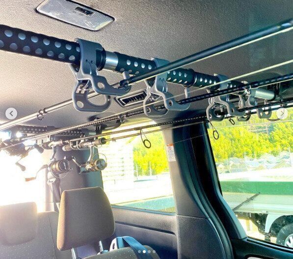 インテリアバーに取り付ければ、竿をしっかり固定してくれます。釣り好きな人にはとっても便利なアイテムですね。