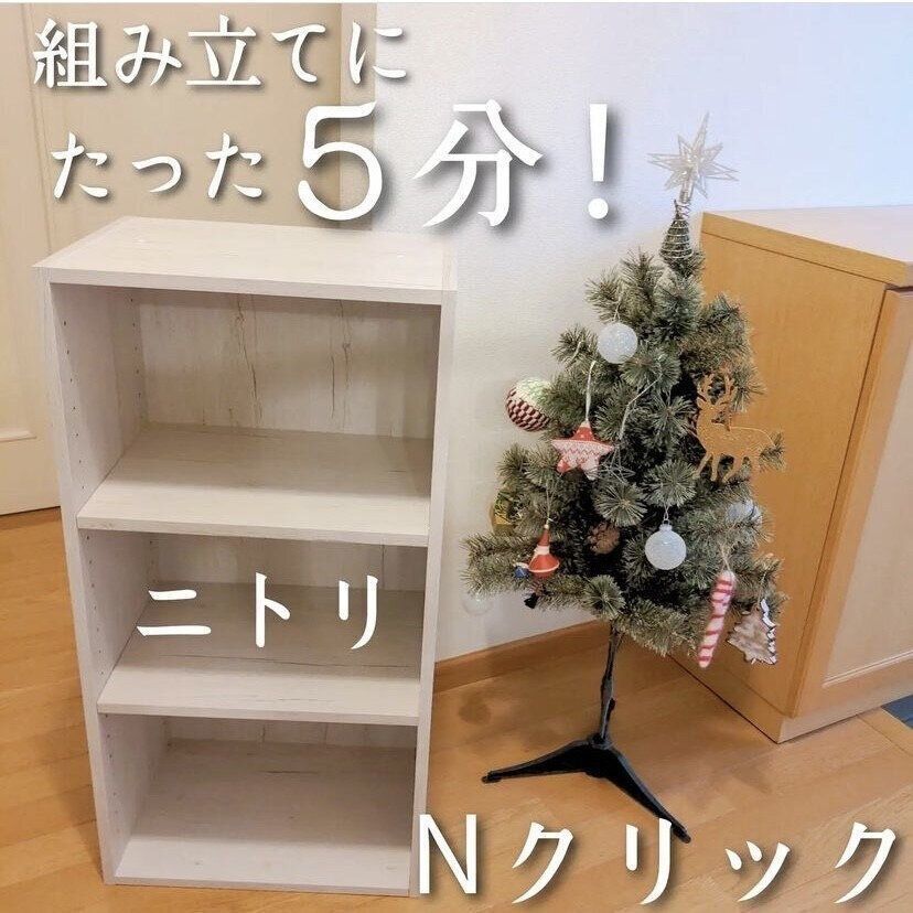 収納棚を買ってきたはいいけれど、組み立てが面倒…!というかたにオススメしたいのが、差し込むだけで完成する「Nクリック(3,490円〜)」です。工具もネジも必要ないこちらのアイテムは、組み立てが苦手なかたでもチャレンジしやすいつくり。カラーボックスと比べると強度があり、木目がオシャレなのも◎。ネジ穴がないため見た目がスッキリしているのも、うれしいですね。