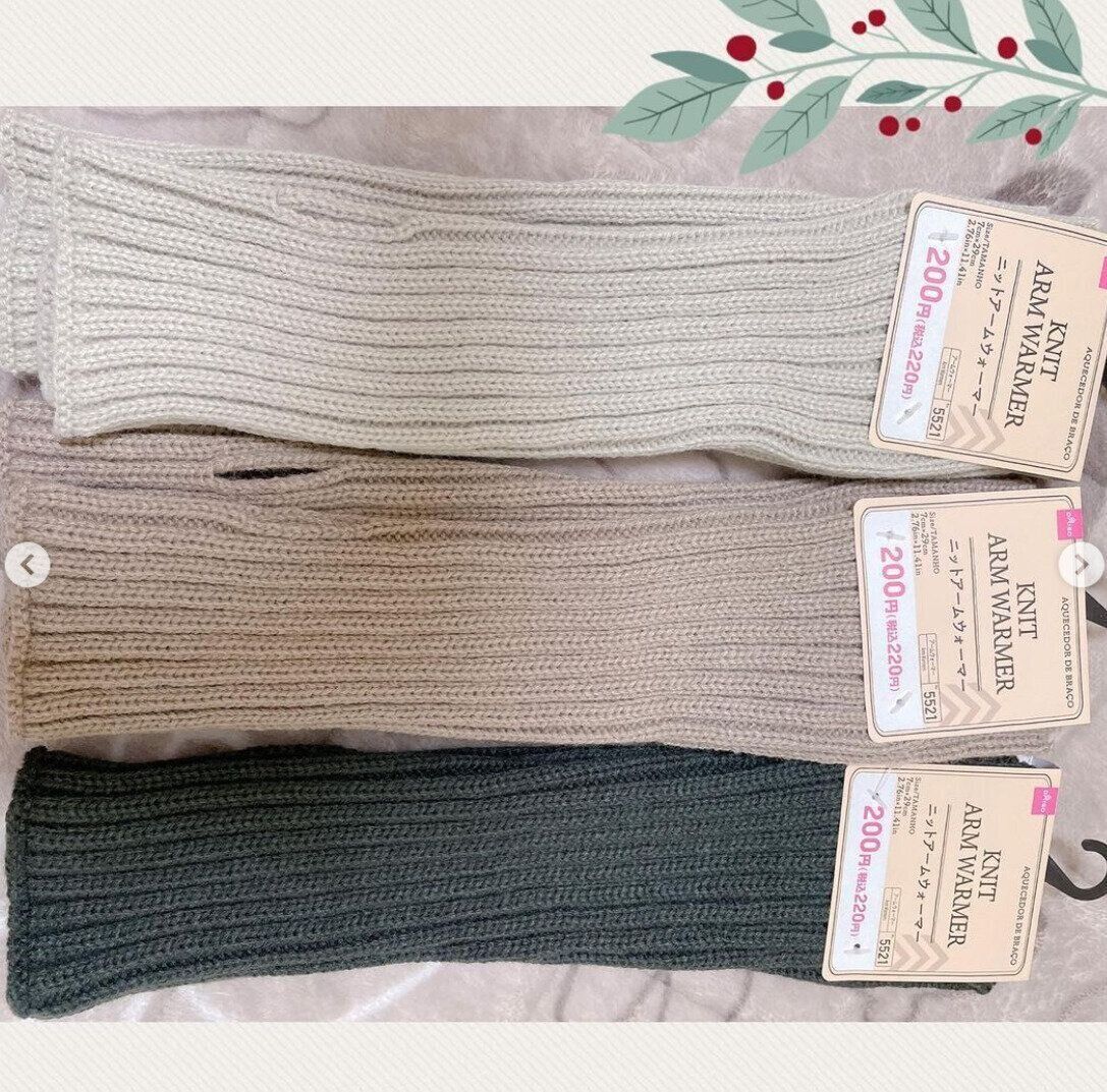 ダイソーの220円商品の、おしゃれなニットアームウォーマー。手元があたたまるだけでなく、重ね着するとちらりと見えて、コーディネートのアクセントにもなるすぐれものです!発売後SNSなどで話題となり、すぐにお店から消えるほどの人気に。見かけたら即買いがおすすめです!
