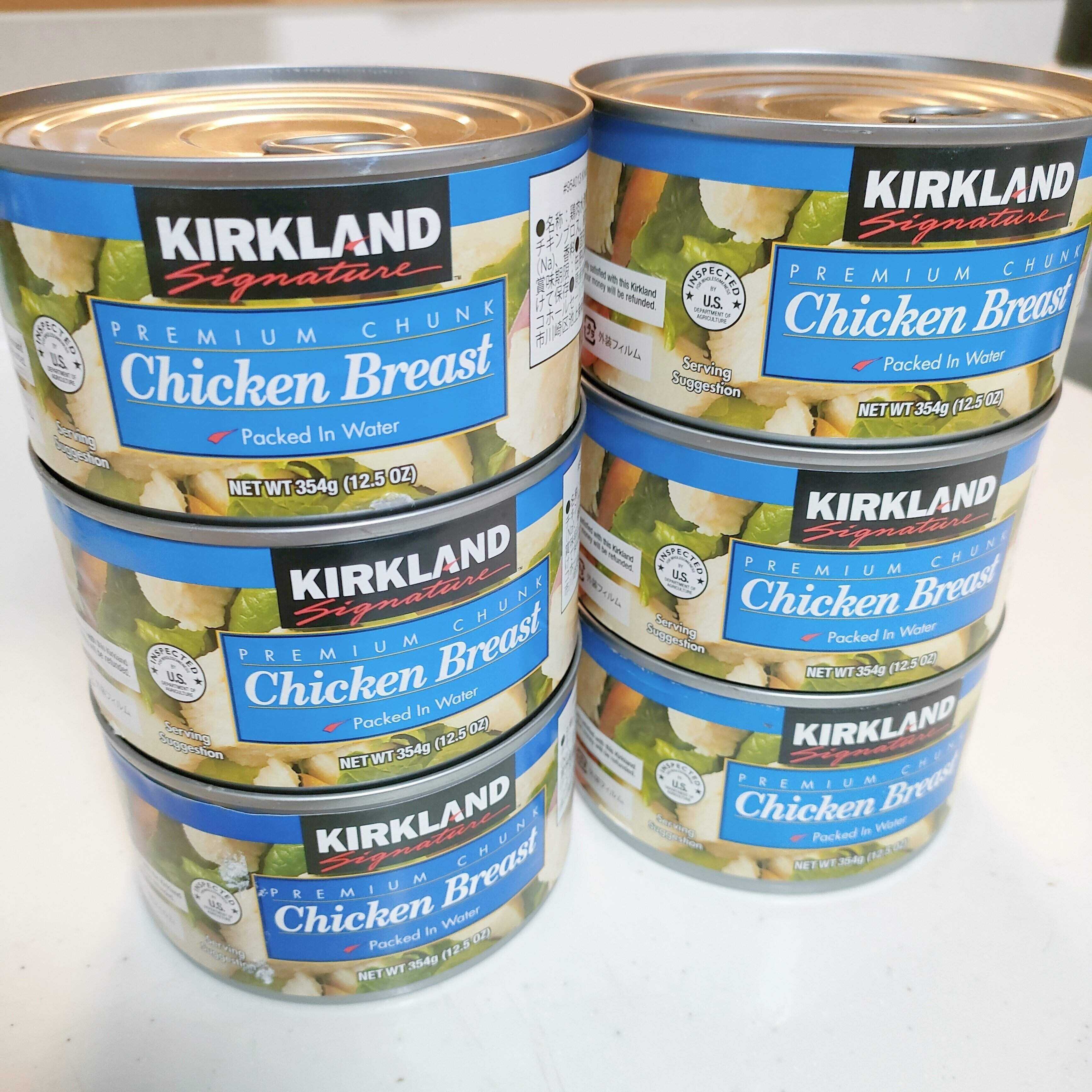 カークランドというオリジナルブランドからつくられている鶏胸肉の缶詰で、6個入で1,888円(税込)。1つ300円ほどですが、市販の缶詰の数倍の大きさがあります。