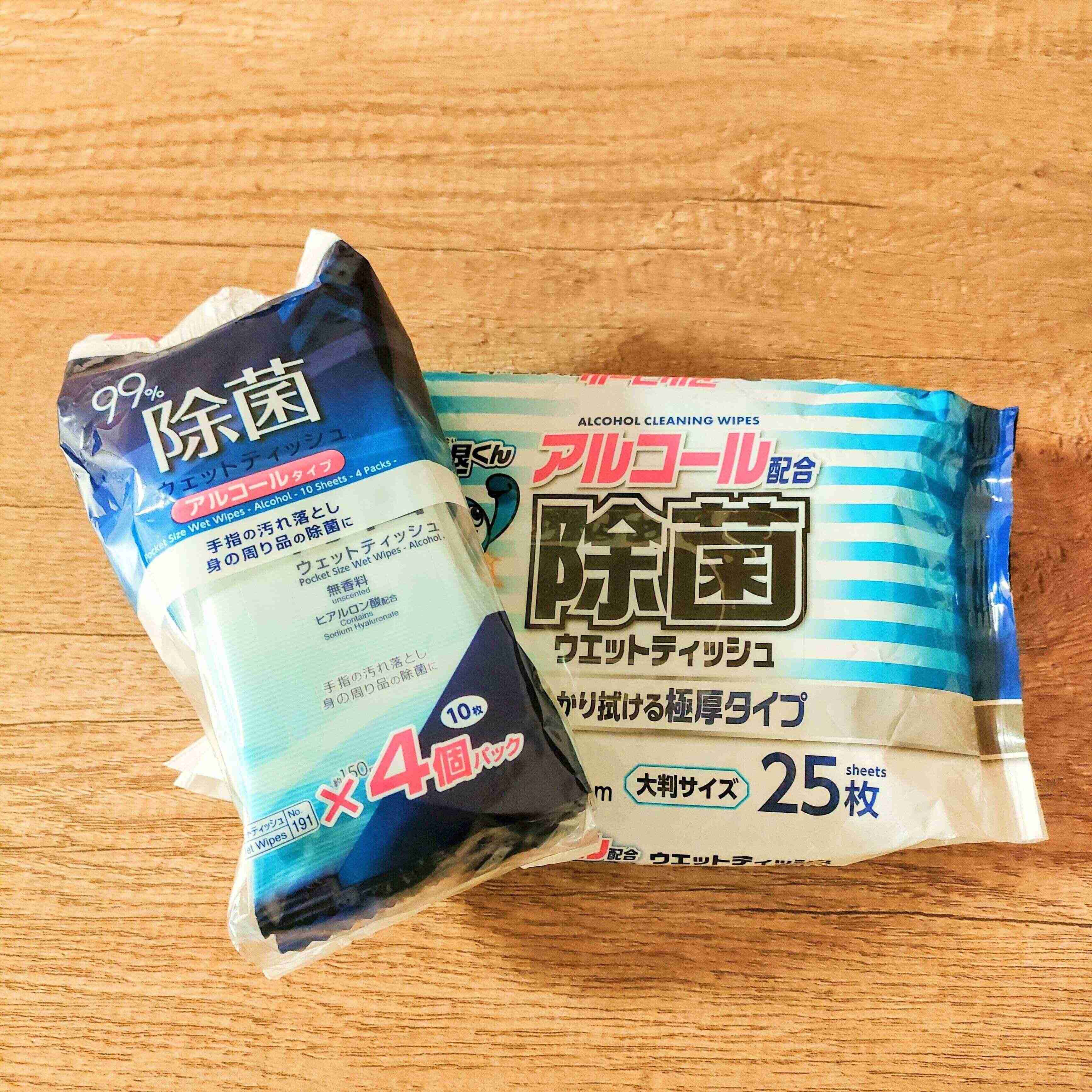 ダイソーには除菌シートが約15〜20種類くらい常備されています。