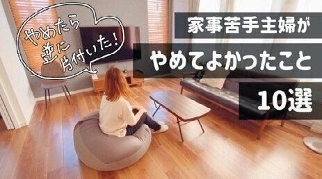 再生回数100万回超の人気動画。「やってよかったこと」ではなく「やめてよかったこと」10選を紹介。マット類や三角コーナーを使わない、服をたたまない……など、ぜひあなたの目でお確かめください!