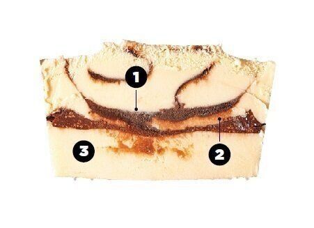 濃厚なマロンペーストに、豊かなこくのミルクと芳醇に香るラム酒を合わせたアイスクリーム。その中にシロップに漬けたマロン粒と、焼いたマロンを凝縮したソースがからむ。