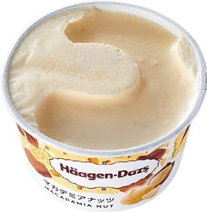 「ごろごろナッツとそれを邪魔しないアイスとの神バランス!」(ク)、「バタースカッチアイスとココナッツオイルでローストしたマカデミアナッツの余韻が残る味」(シ)。