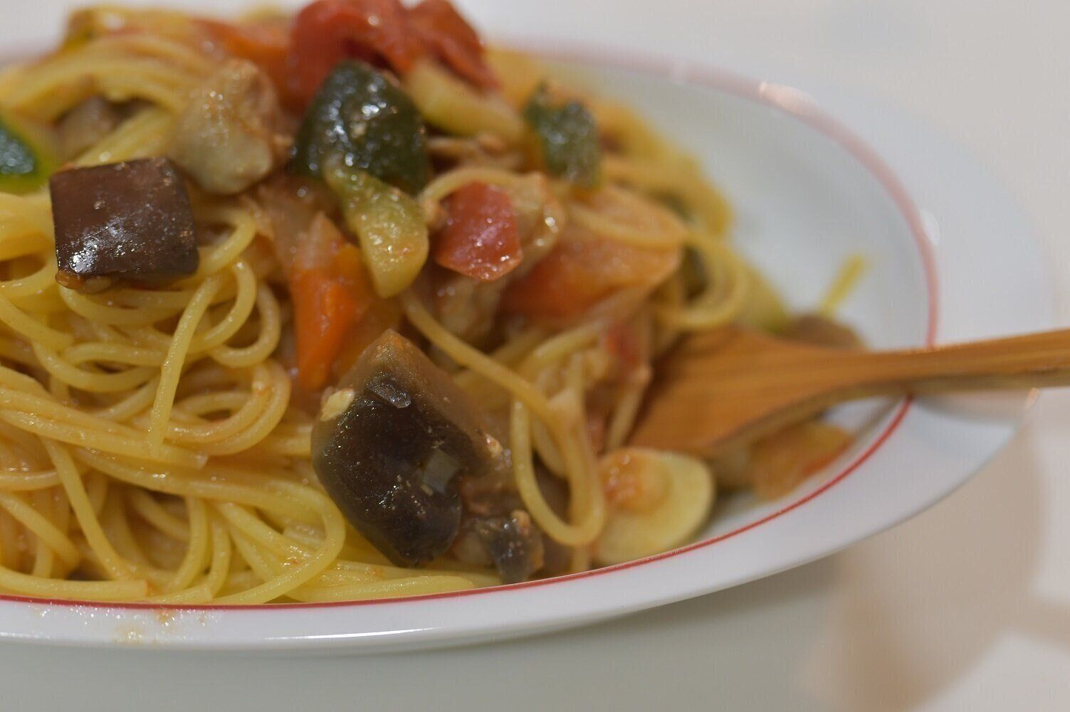 これを使った料理としては、ラタトゥイユがおすすめ。丼なら2~3人前ほど、パスタなら3~4人前ほどが1袋でつくれるので、コスパも抜群ですよ。