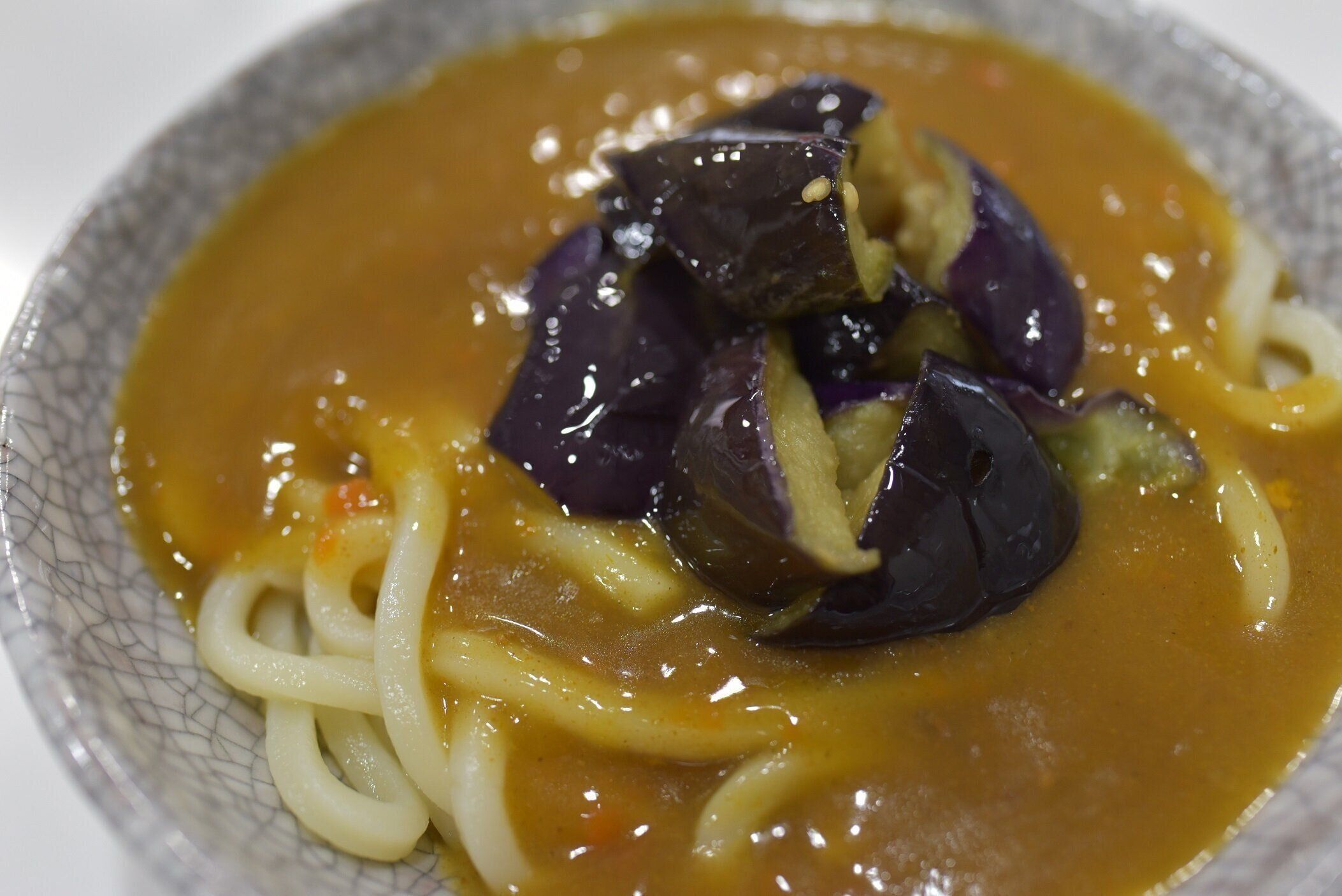 この揚げなすを使って作る食事でおすすめなのが、カレーです。とくに、カレーうどんとの相性は抜群。業務スーパーの冷凍うどんと、カレーうどんの素を使えば、かんたんに作ることができますよ。