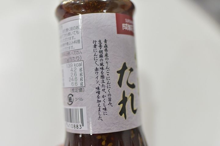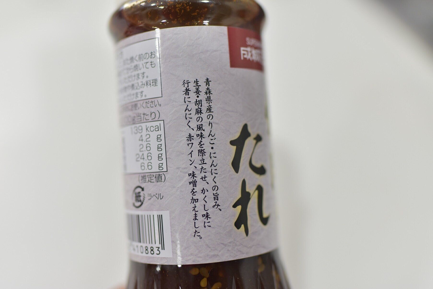 青森県産のりんごをメインに使用した甘めのたれで、にんにくとゴマ油の香りが効いていますが、味はとてもマイルド。