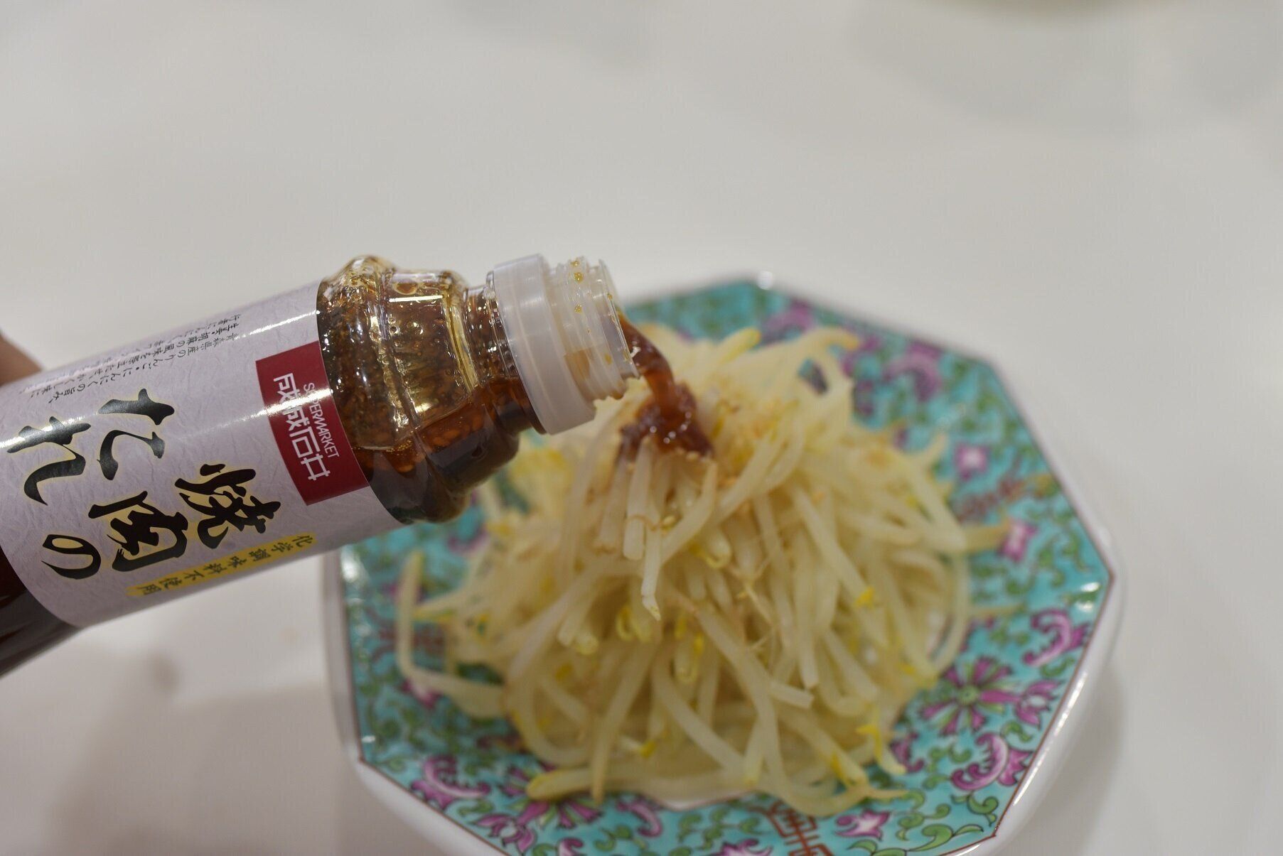 家族からのリクエストが一番多いのは、ゆでもやし+成城石井の焼肉のたれ。