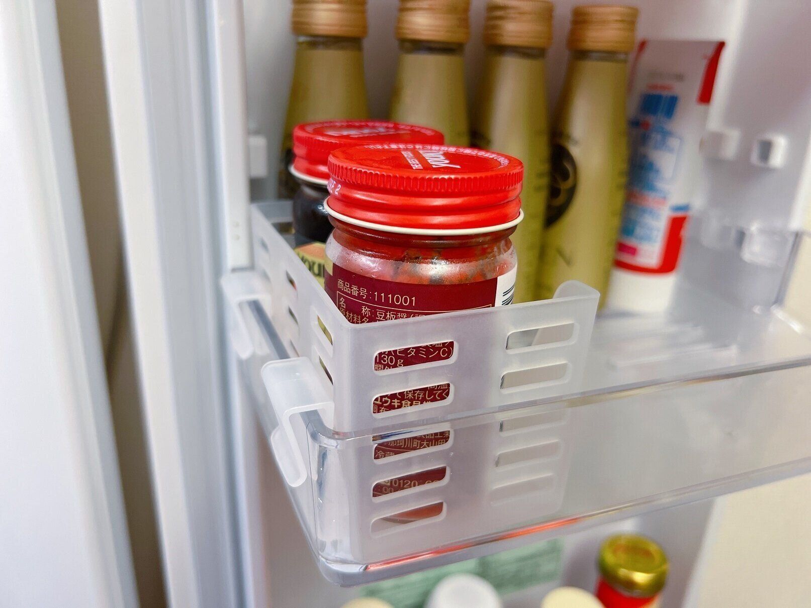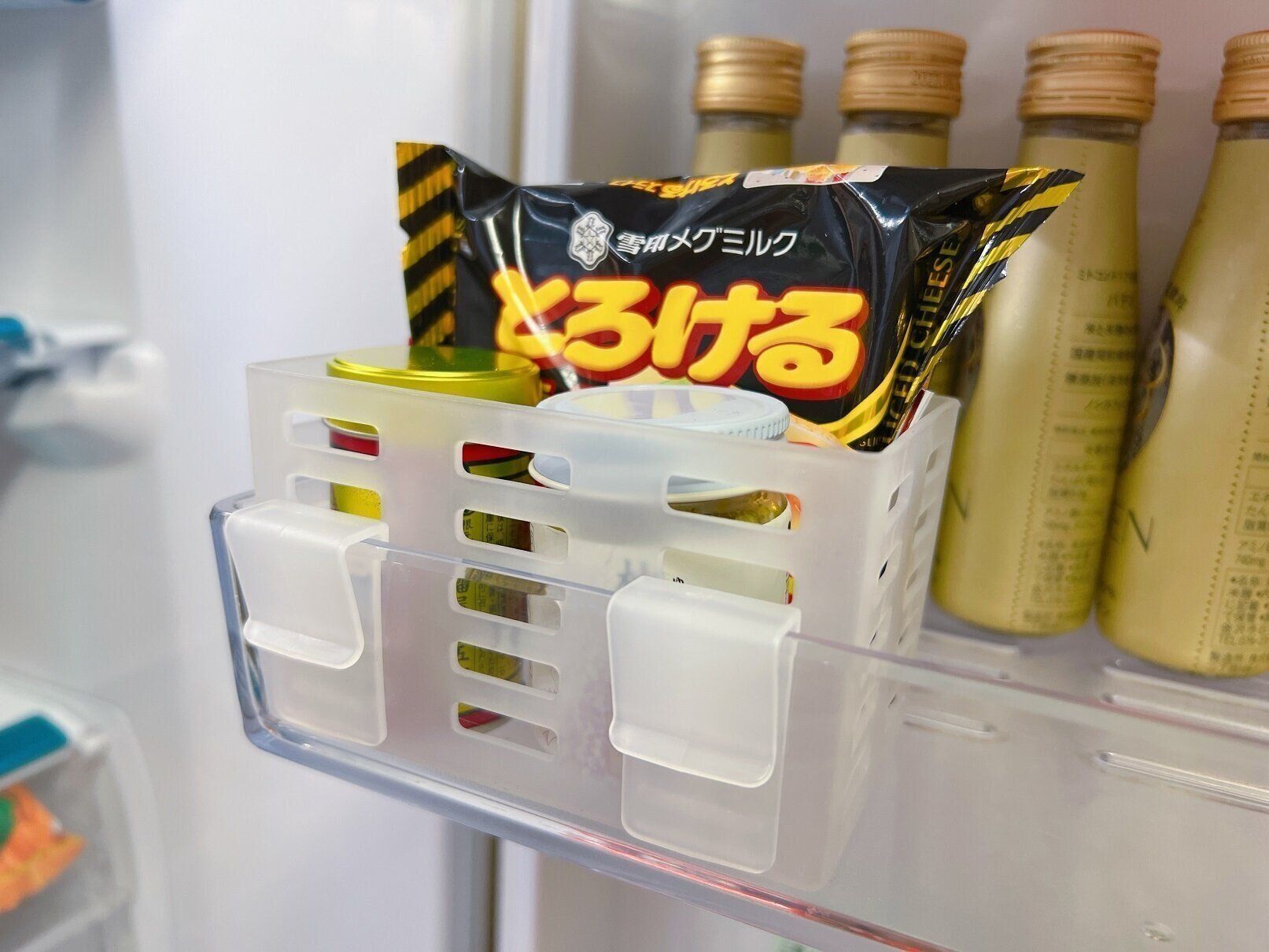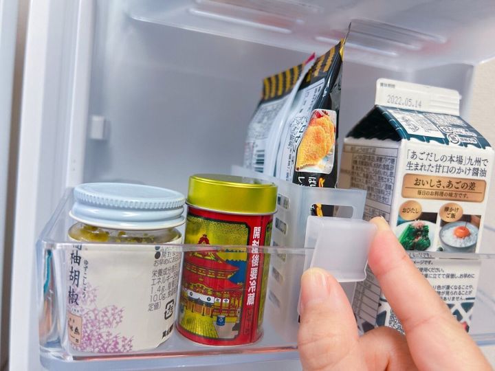 冷蔵庫のドアポケットは調味料などが倒れてしまって、なにかとごちゃつきがち。ダイソーの「ドアポケットすっきりケース」はそんな問題を解決してくれるアイテムなんだとか。