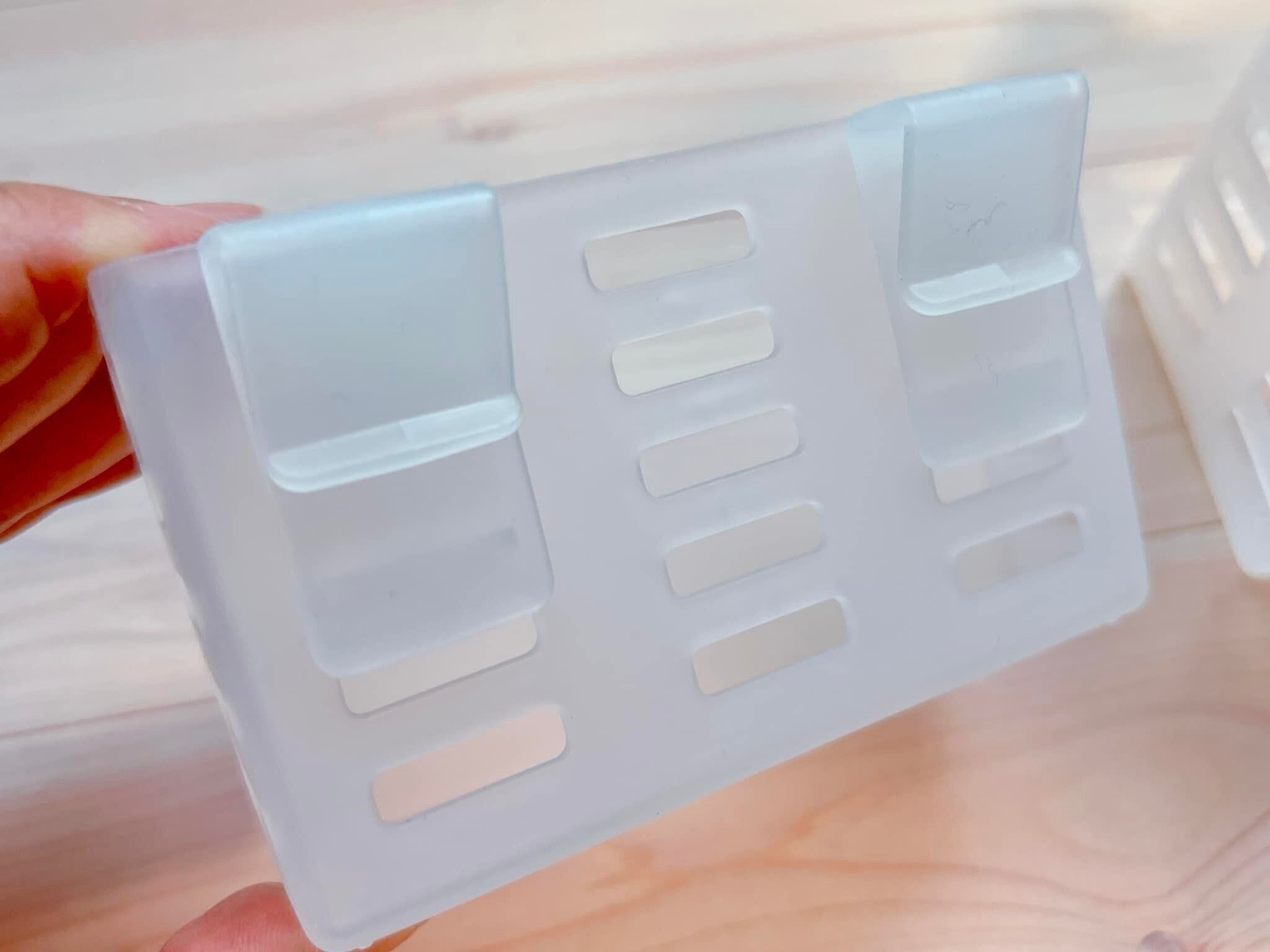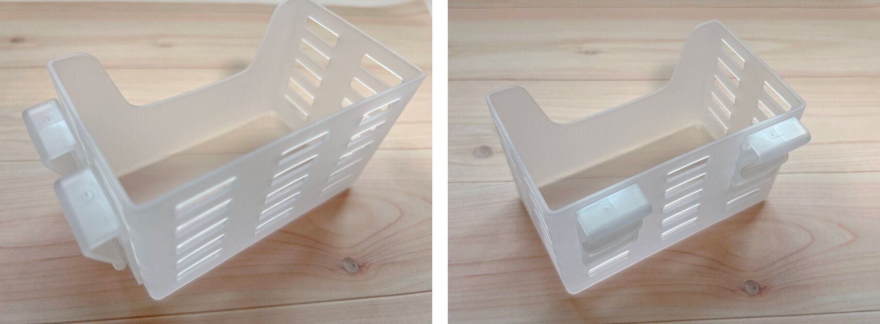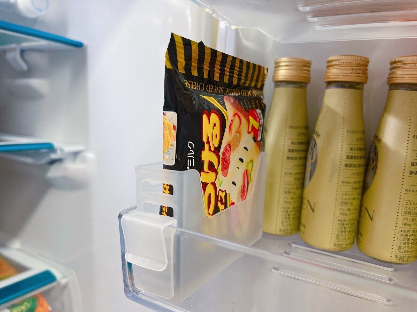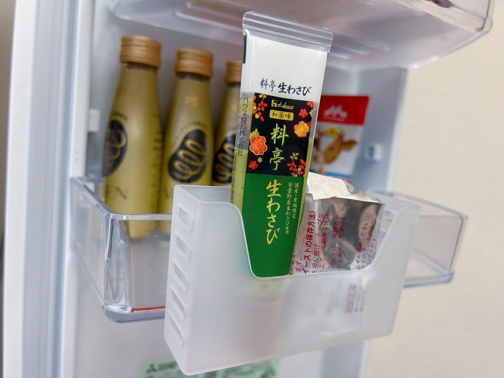 スリムサイズはチューブ入り調味料やスライスチーズ入れにぴったり。迷子になりがちな小さな調味料もここに入れておくと探さずに取り出せます。幅が約3cmなので、わが家の冷蔵庫だと外側に付けてもドアが閉まりました。