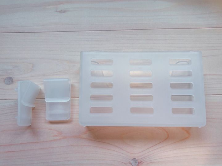 いろんな小物が集まる洗面所でも活躍してくれます。トレイの外側に掛けて、細々した物をすっきり収納できます。