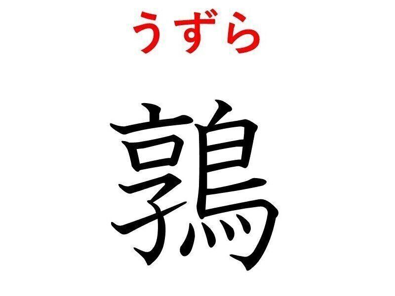 ふだんはひらがなやカタカナで書くことが多いうずら。そのため漢字を知る人は少なく、漢検一級レベルの難読漢字になっています。