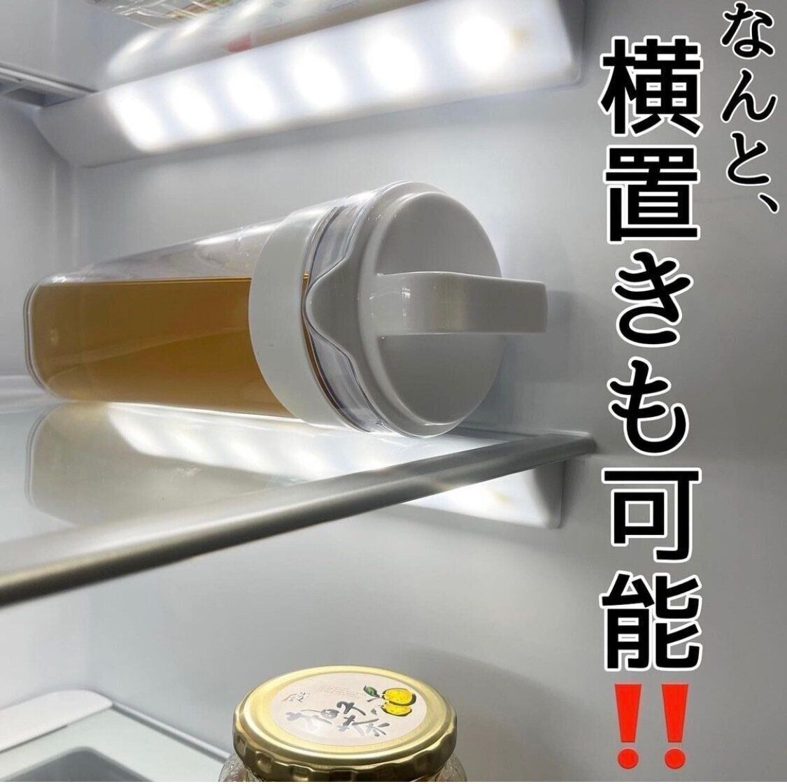 冷蔵庫のドアポケットってなにかと埋まりがち…そんなときに横置き可能なピッチャーはとてもありがたいです。もちろんドアポケットにもぴったり。広口なので、洗うときもしっかり洗浄できます。
