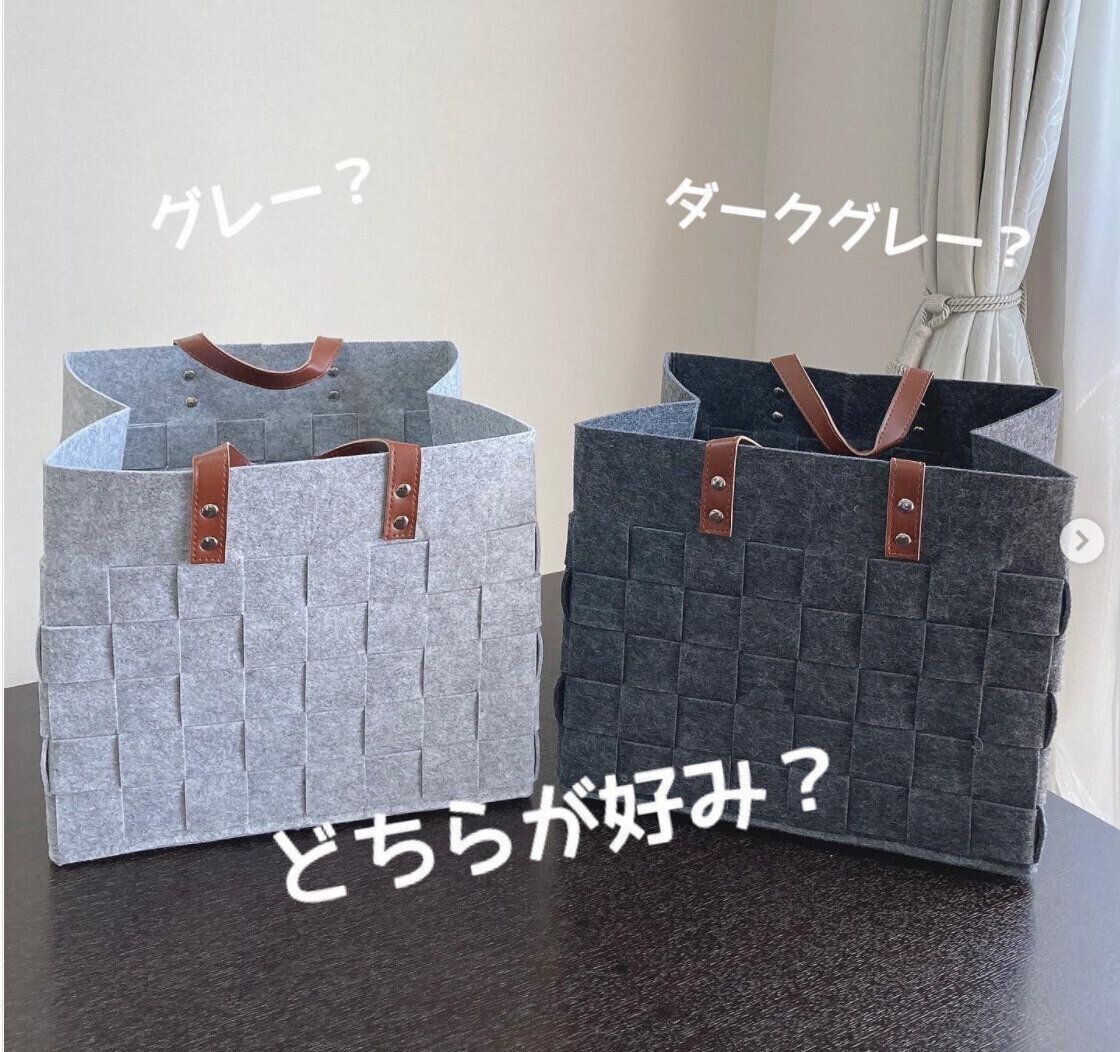 しっかりとしたフェルト素材&編み込みデザインがおしゃれな、ダイソーの編み込みフェルト収納。値段は550円です。たっぷり入って使い勝手がよく、取っ手つきなので持ち運びも便利です。インテリアになじむデザインで、追加購入&色違い購入もおすすめですよ。