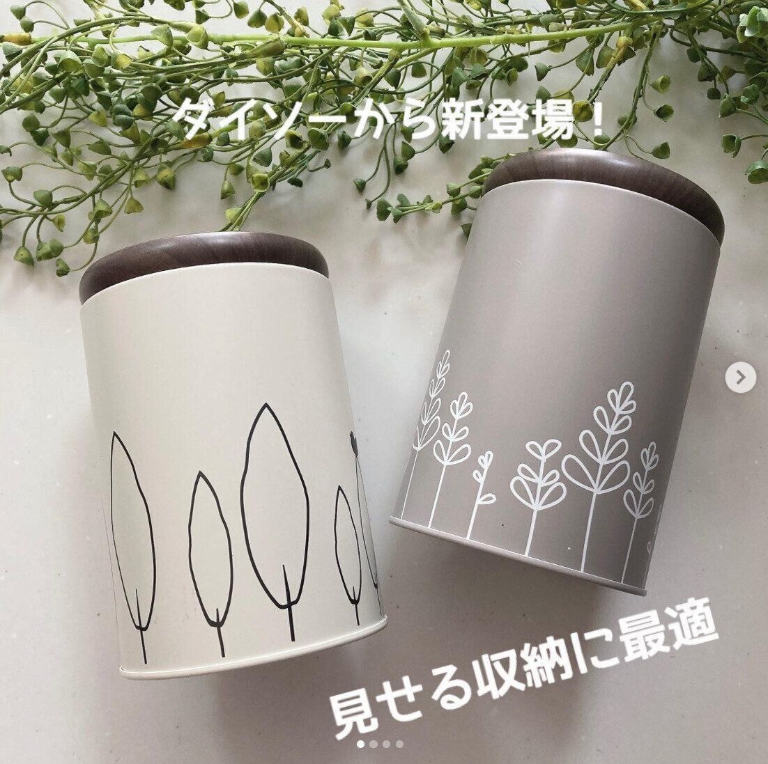 ナチュラルでおしゃれな絵柄がポイントの、ダイソーの北欧風デザインのキャニスター缶。かわいくて買わずにはいられなかった!と人気です。キッチンはもちろん、小物入れなど、おうちのいろいろな場所で活躍してくれます。置いておくだけでかわいいので、見せる収納にもぴったりです。