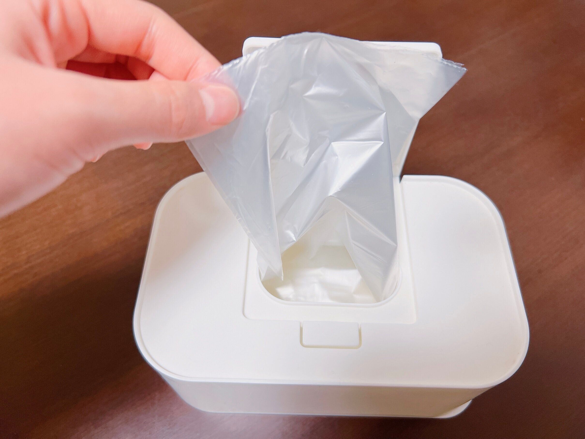 ゴミ袋をゴミ箱にセットして使わない場合は、ウエットティッシュケースなどに収納しても、次の袋も引き上げられて使いやすいです。
