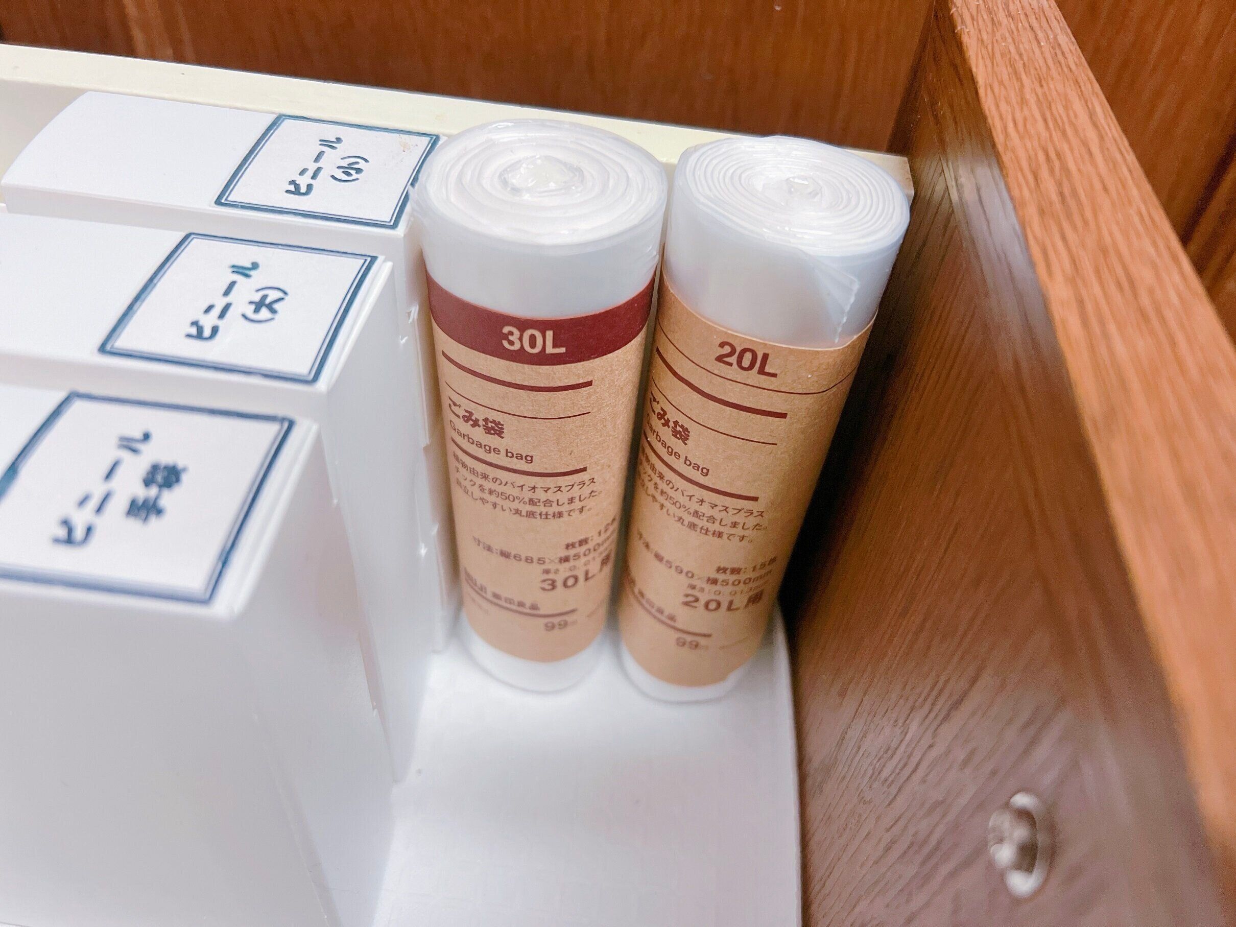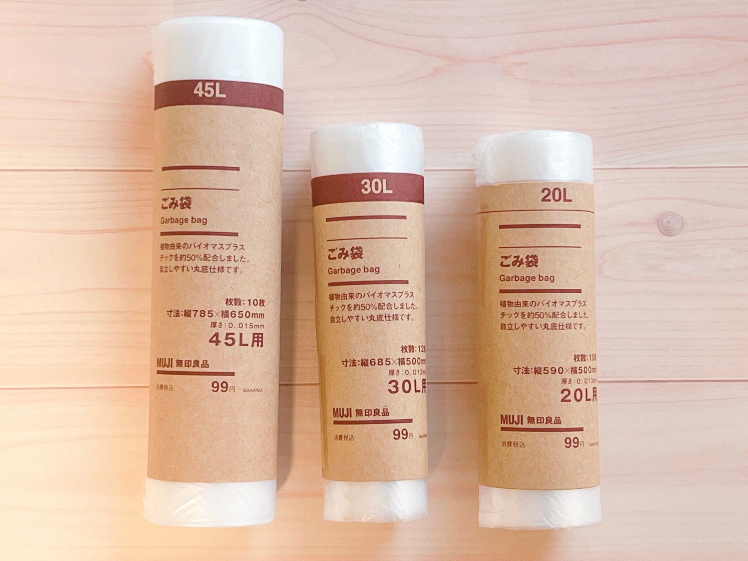 ゴミ箱のゴミ袋交換は「名もなき家事」と呼ばれることもあるくらい、地味に面倒な作業。でも、無印良品のロールタイプゴミ袋なら、次のゴミ袋セットが以下のとおりとても楽ちんです。